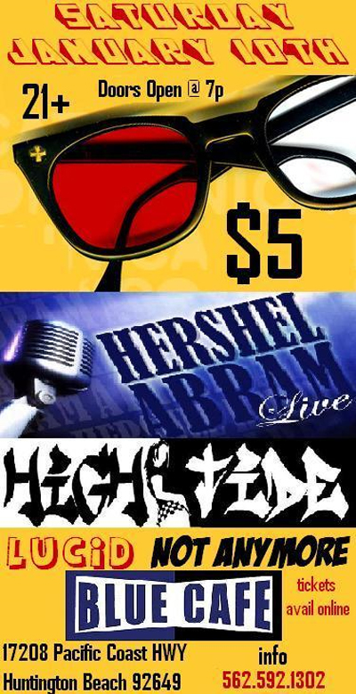 Hershel and his band have a show coming up in January on the 10th at the Blue Cafe in Huntington Beach. I told Hershel about that venue. Hee hee, I had to throw that in!